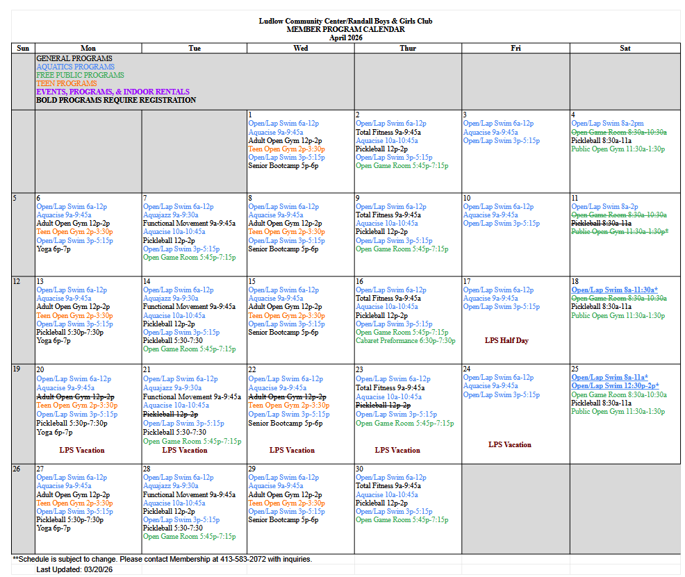 Full Program Calendar